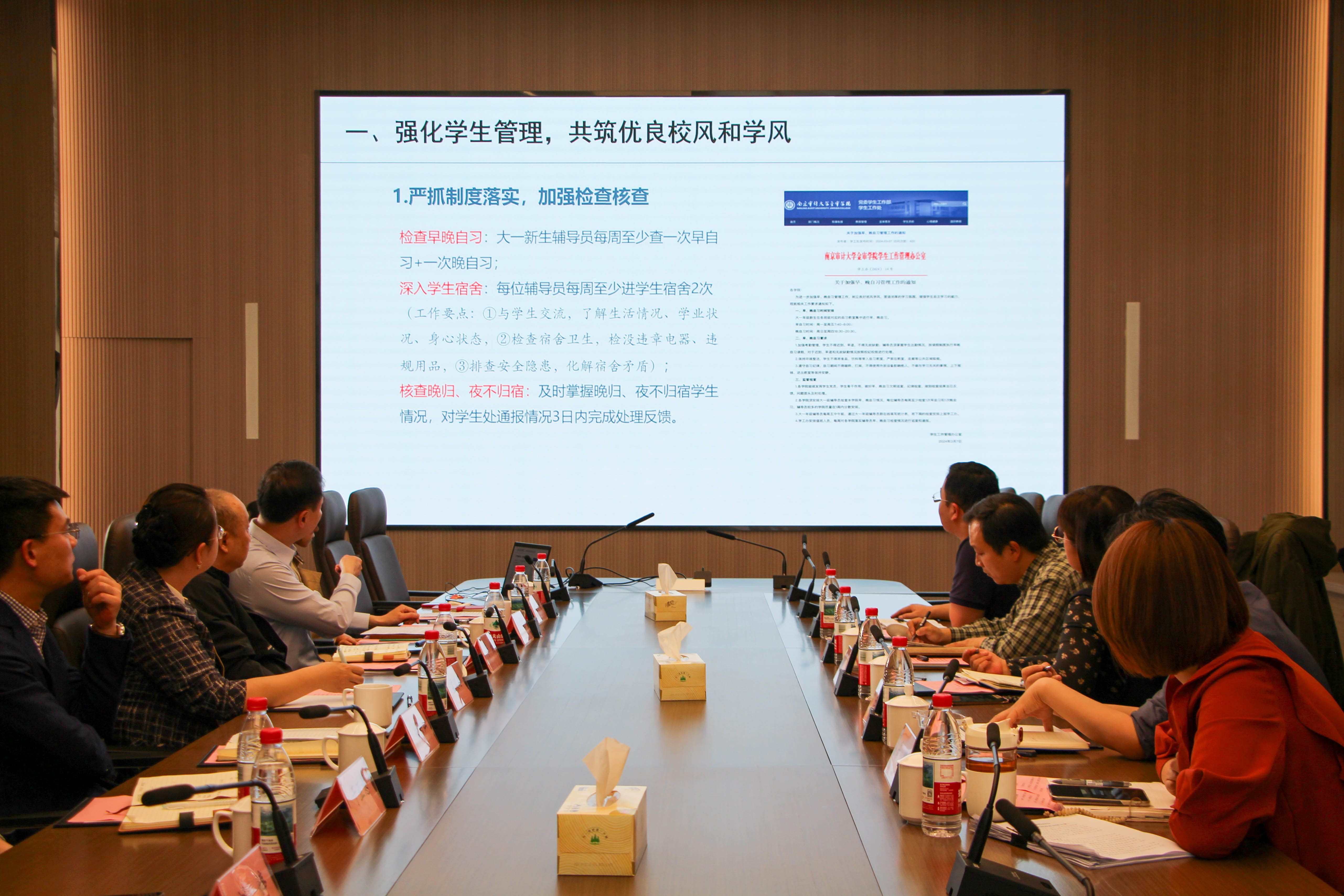 座谈交流环节,双方围绕三大核心议题展开热烈讨论。在教学质量管理建设方面,徐洪灿处长介绍了金审学院在教学质量监控、课程建设、师资培养等方面的举措;王志坚处长助理分享了金审学院在学风建设、校园文化活动中的创新做法;李焕处长围绕智慧校园建设、数字化教学资源整合、网络安全管理等内容展开交流,分享了信息化技术在教育教学中的应用经验与未来规划。