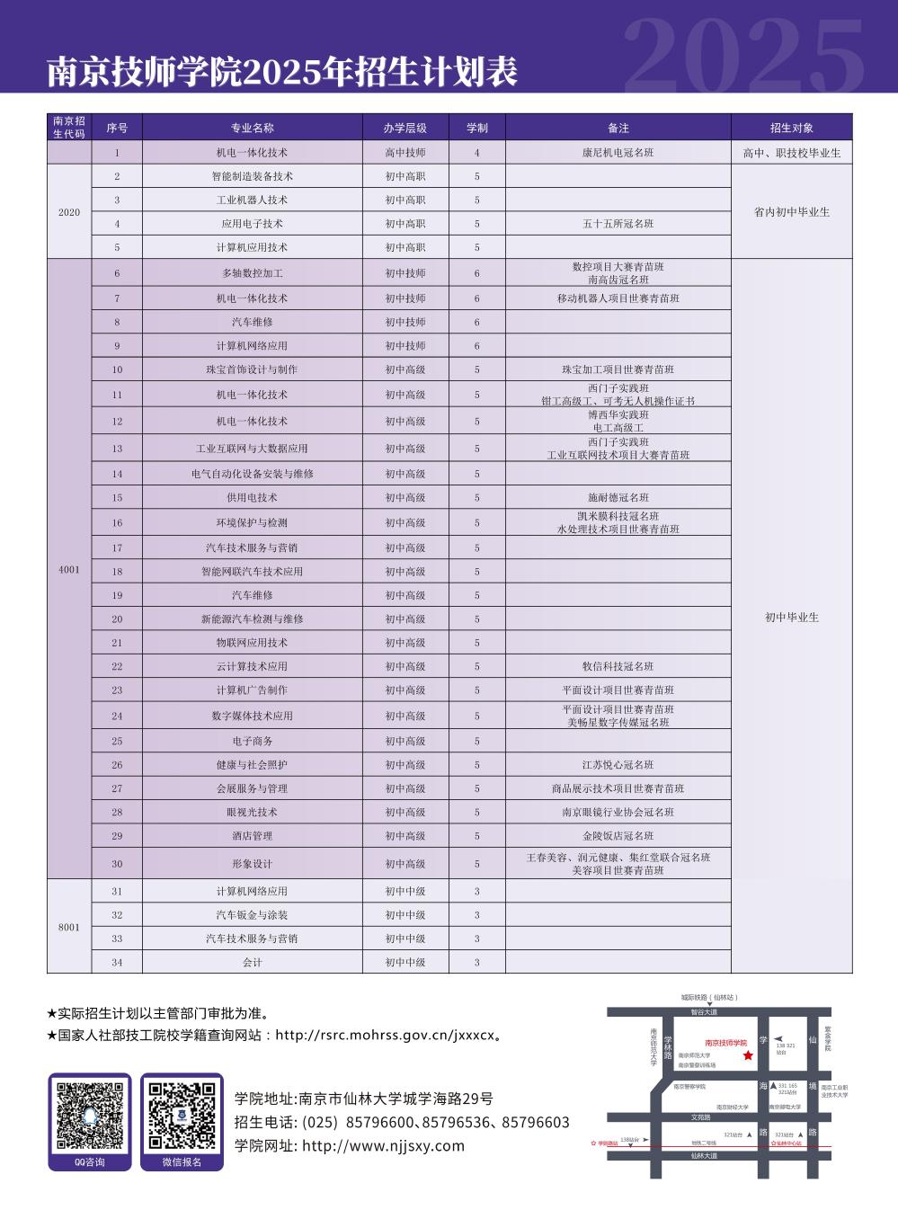 2025年南京技师学院招生计划表