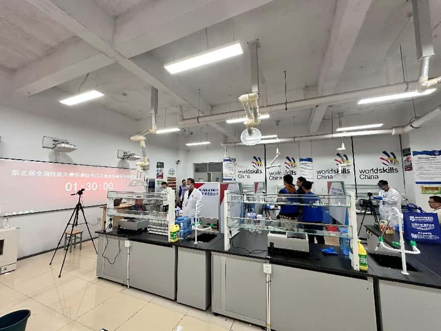 污水处理项目比赛聚焦选手泵的拆装与维护、污水絮凝实验、水中磷酸盐监测等综合应用能力,工业互联网工程技术项目竞赛涵盖工业互联网网络架构设计、设备组网调试、数据分析与处理、平台开发与优化等多个技术领域。参赛选手们表现出色,展现了扎实的理论功底和熟练的实操能力。