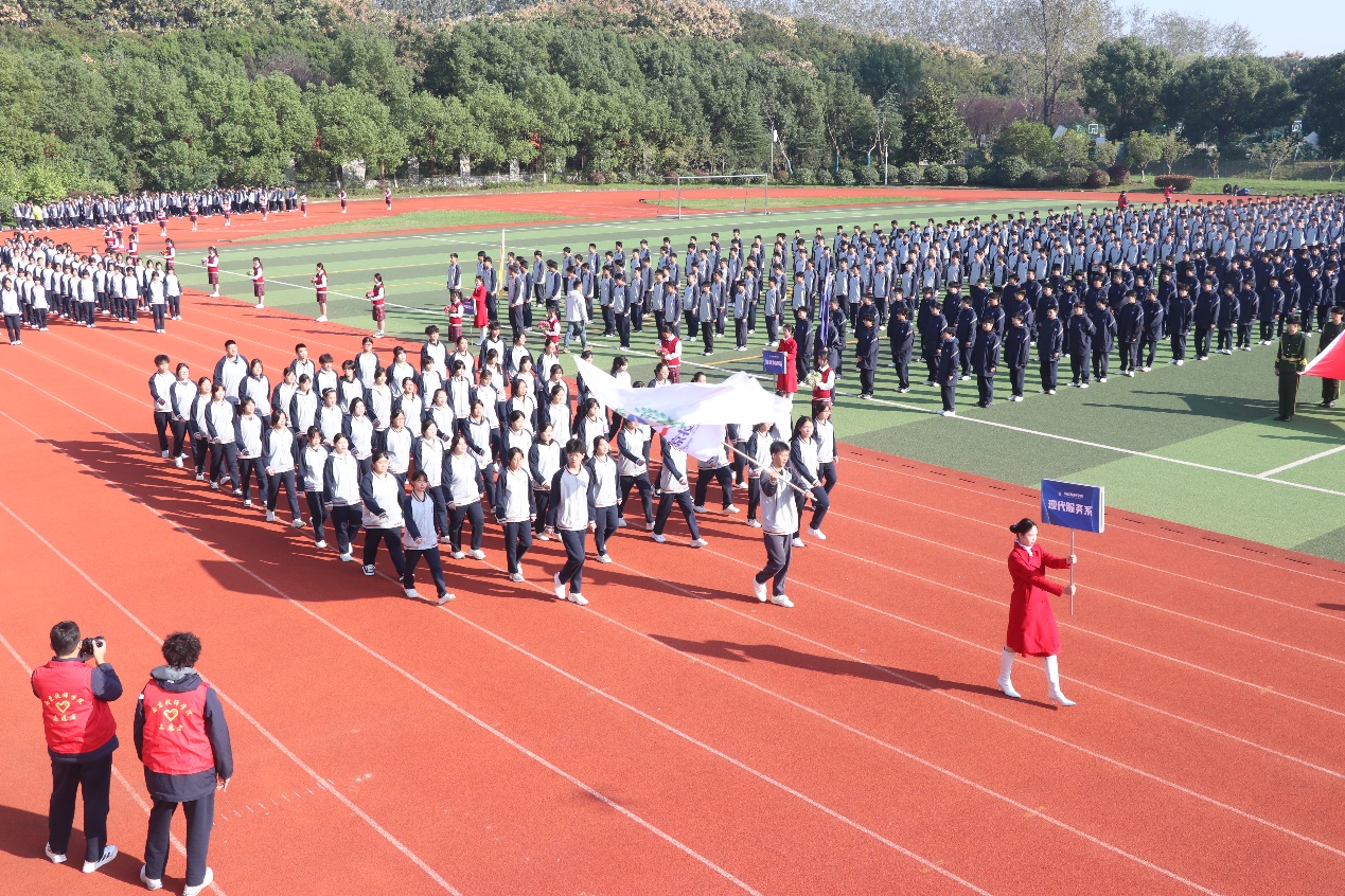 开幕式上,电气工程系、信息技术系、智能制造系、汽车技术系、现代服务系五大系部方阵依次登场,队员们步伐铿锵、口号嘹亮,结合专业元素的队形变换尽显各系风采,赢得了阵阵掌声。